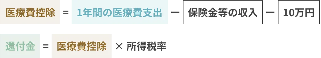 医療費控除額と還付金の計算式